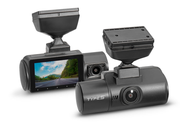 The TYPE S S402 Pro is a 4K UHD dual view dashcam that includes a 2K cabin facing camera. It not only captures everything that's ahead of you in crystal clear 4K resolution, but also records everything that's going on inside the car in QHD, making it a must-have for rideshare operators; record and retain solid evidence 24/7. Features G-sensor technology that autosaves and locks the video to the MicroSD memory card during any sudden movement. Compatible with the TYPE S Drive app, allowing you to transfer your recordings directly to your mobile device via WiFi.